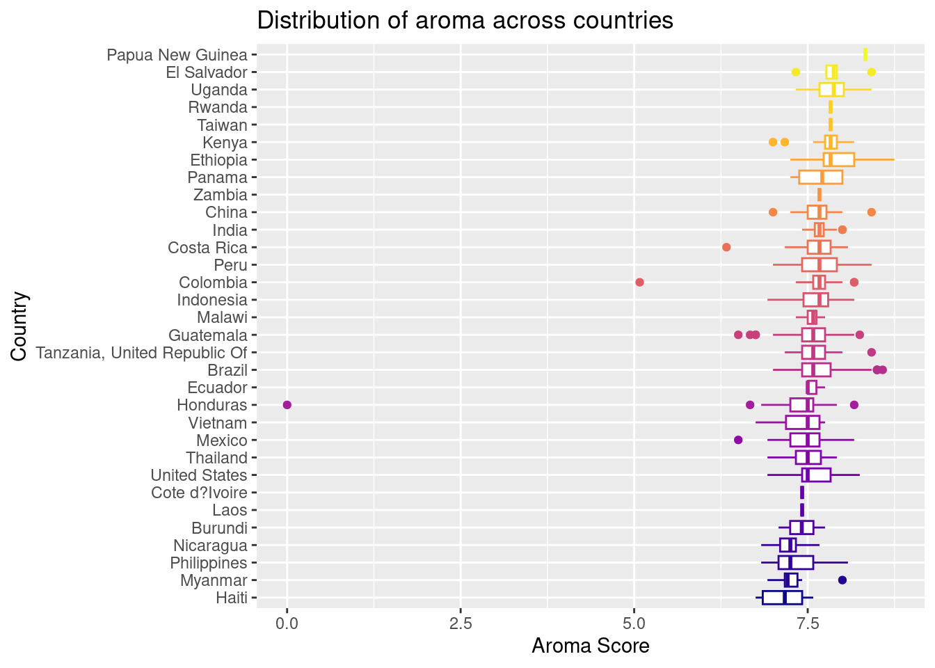 rename(country = Location.Country, region = Location.Region, year = Year, species = Data.Type.Species, aroma_score = Data.Scores.Aroma, flavor_score = Data.Scores.Flavor, aftertaste_score = Data.Scores.Aftertaste, acidity_score = Data.Scores.Acidity, balance_score = Data.Scores.Balance, sweetness_score = Data.Scores.Sweetness, moisture_score = Data.Scores.Moisture, total_score = Data.Scores.Total)