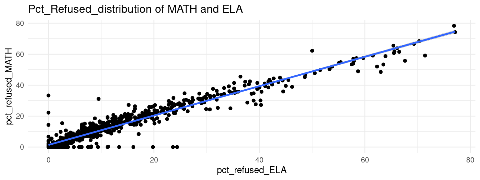 Is no relationship between ELA and MATH about the percentage of refusals?