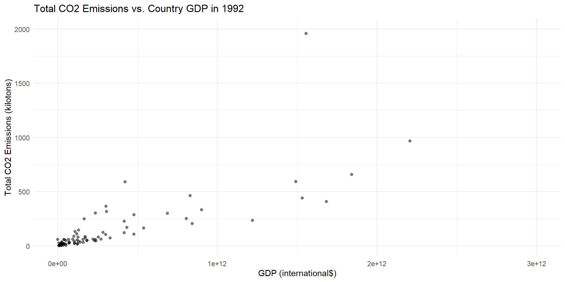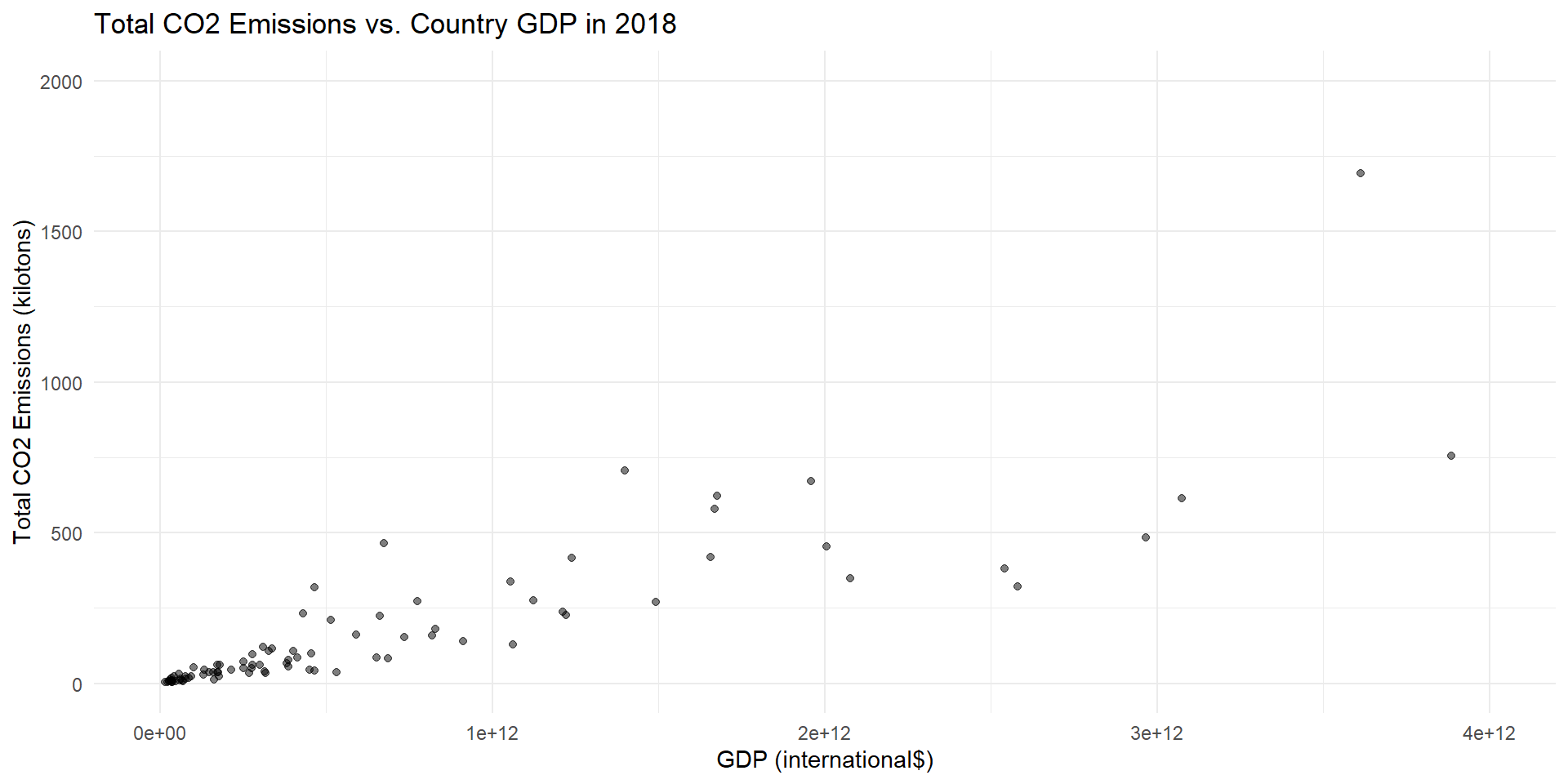 Research question: What is the association between GDP and CO2 emissions for developing versus developed countries in 2018?