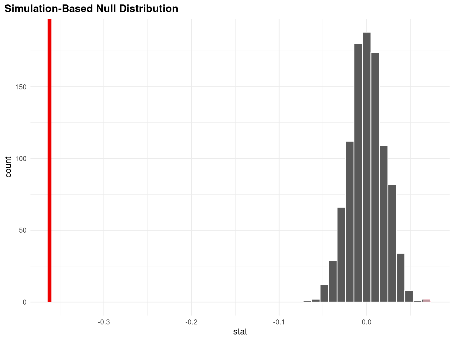 - Since p value of 0 < 0.05, we reject the null hypothesis in favor of the alternative hypothesis. We found convincing evidence that