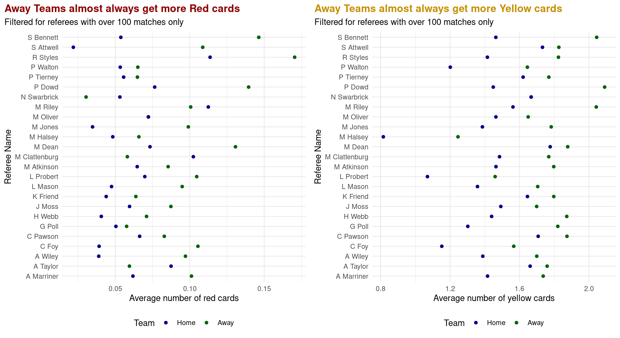 - Identify if there is a difference between the average number of cards given to the Home Team and to the Away Team