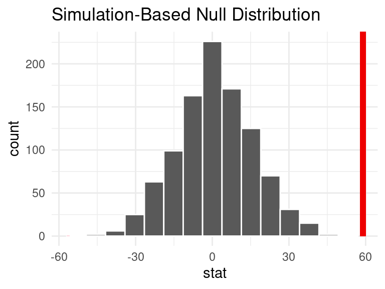 This makes sense, as based on our confidence interval (from bootstrapping), we are 95% confident that the difference between the true population means of duels for European and non-European leagues is between 30.63766 and 86.54825 (i.e. positive), implying that European leagues duel more than non-European leagues, on average. So, we are 95% confident that European leagues duel more than non-European leagues.