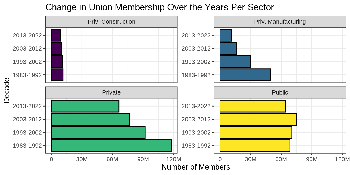 Union support and activity has recently been rising, so it is pertinent to investigate how union membership has changed over time, and how that change might correlate with changes in compensation.