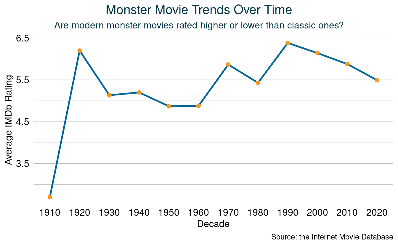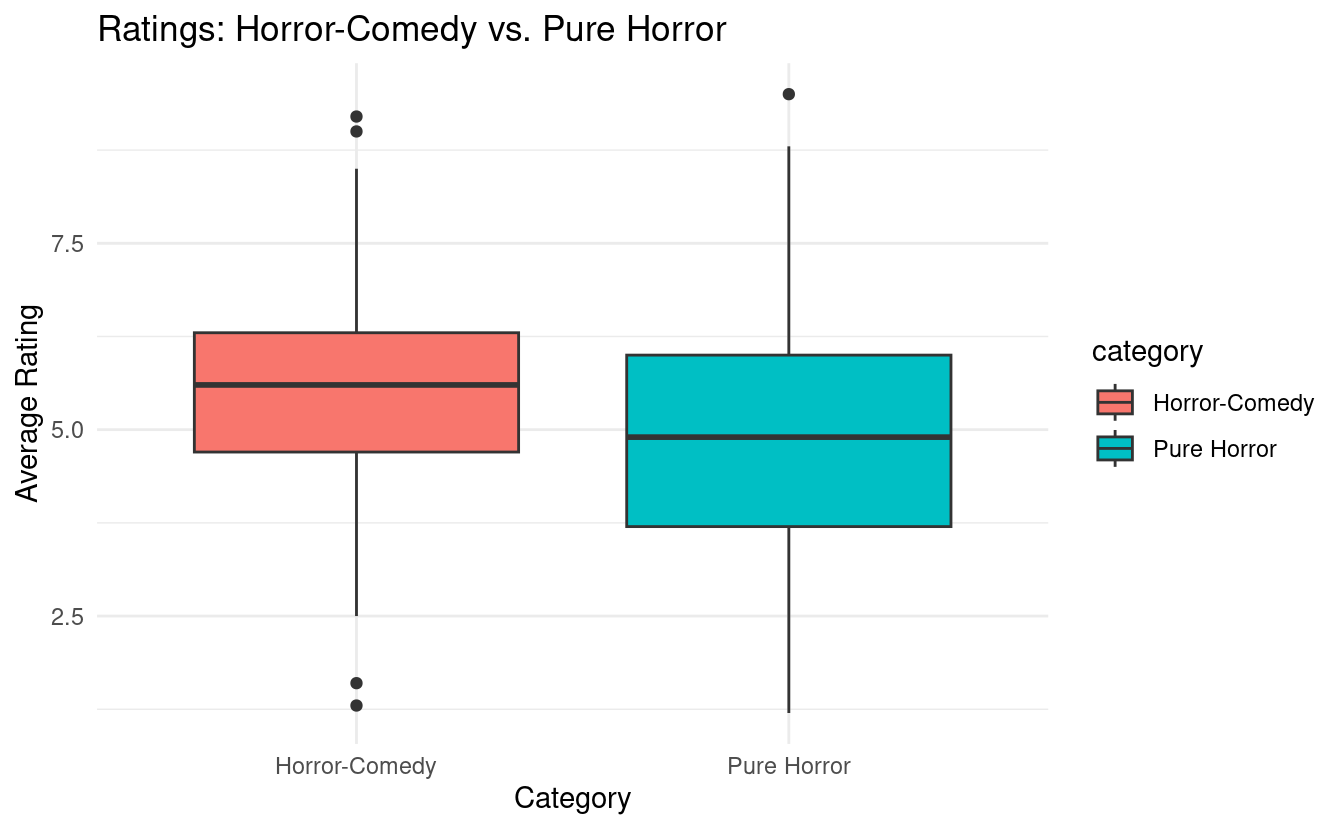 - Do horror-comedy monster movies tend to have higher ratings than pure horror ones?