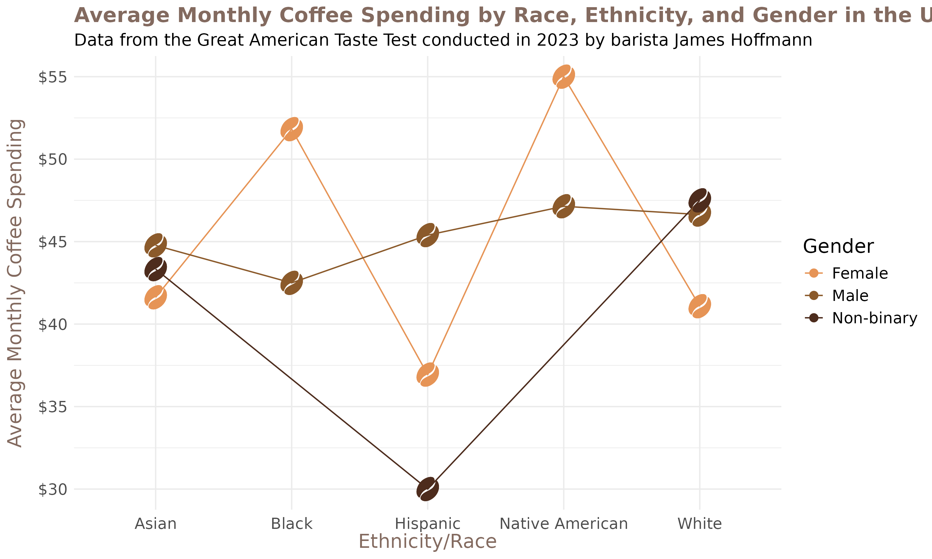 ☕ Q1: How Does Coffee Spending Vary Based On Gender, Ethnicity, and Race?