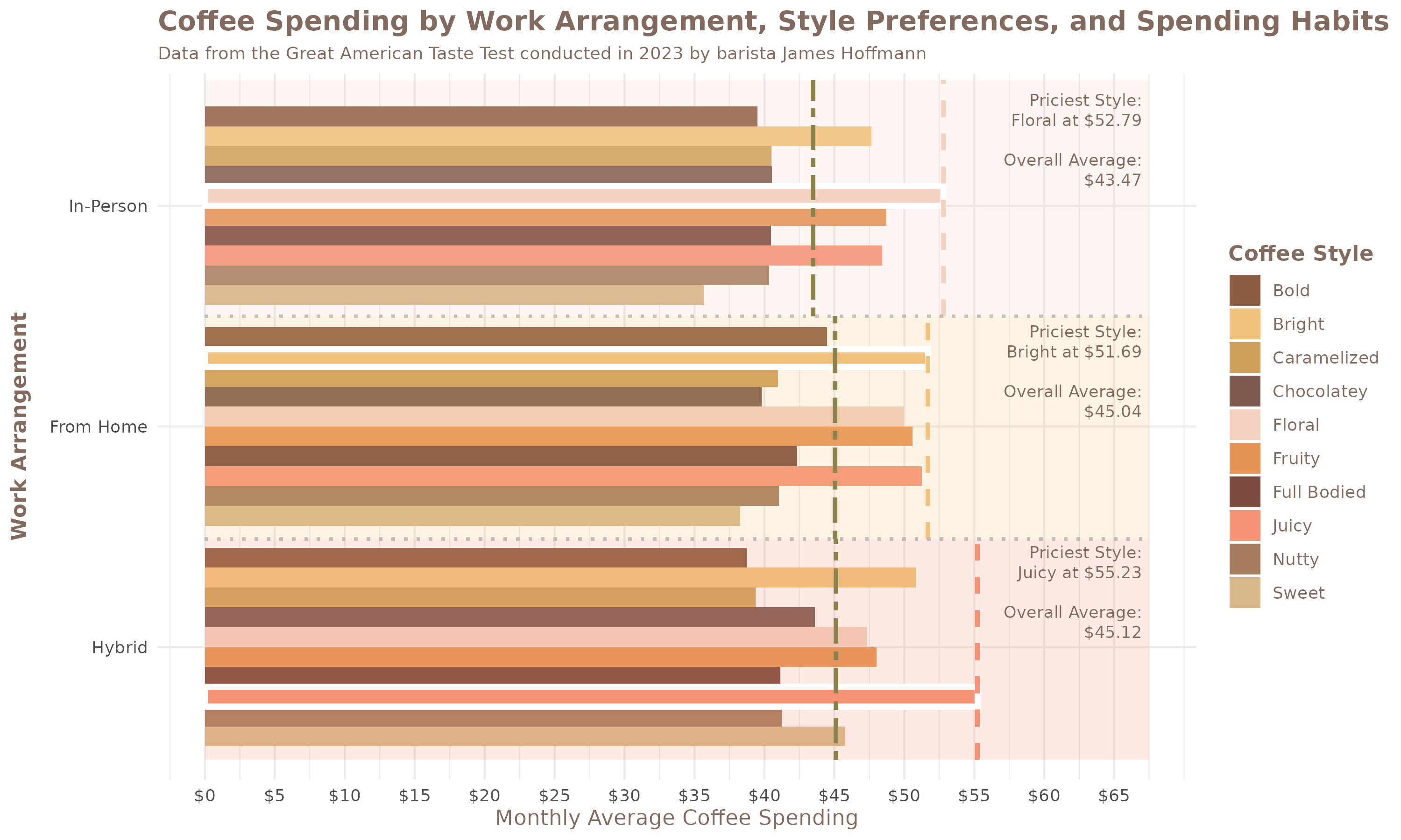 ☕ Q2: Coffee Spending by Work Arrangement, Taste Preferences, and Spending Habits