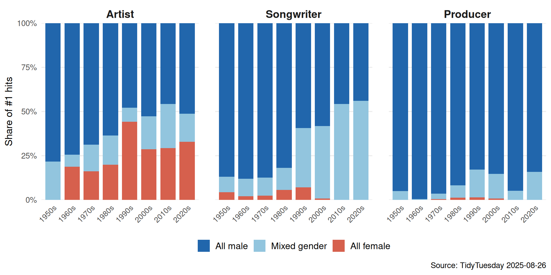 Two questions: How has the sound of #1 hits changed? And who has been making them?