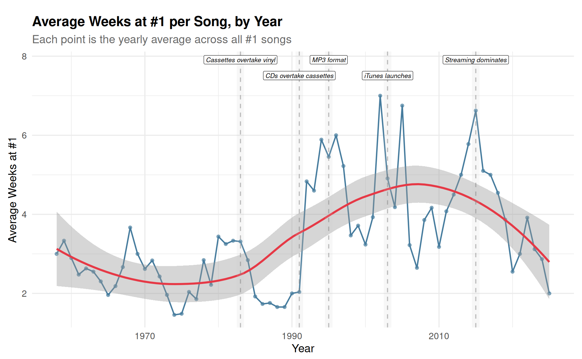- Conclusion: It has become harder to dominate the Hot 100 in the streaming era — the chart now cycles through hits more like the early vinyl years than the CD era