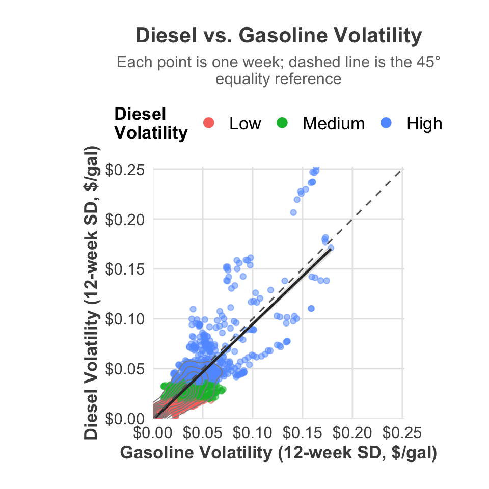 High volatility –> spikes in the diesel premium.
