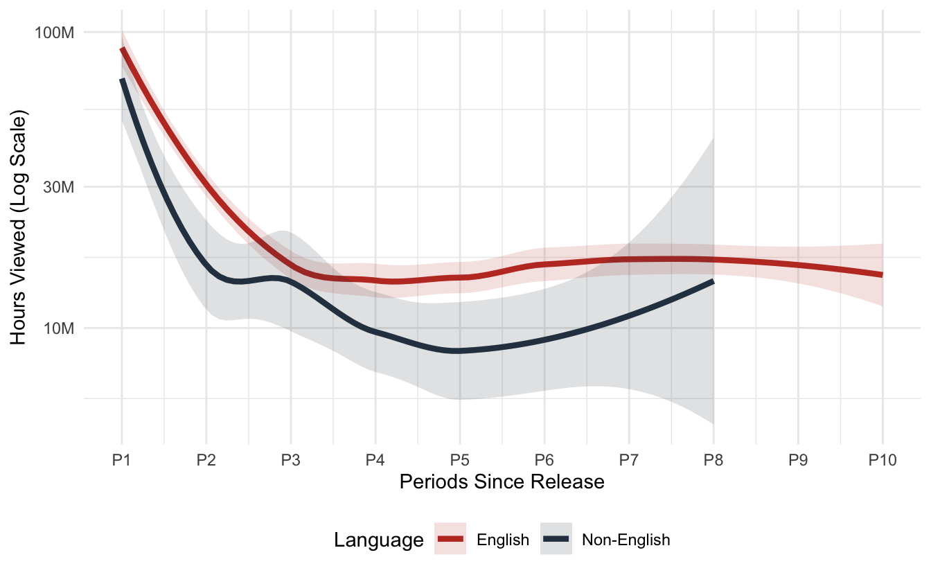 hours_viewed, release_date, available_globally, runtimeperiods_since_release (6-month intervals) to align movies across release years