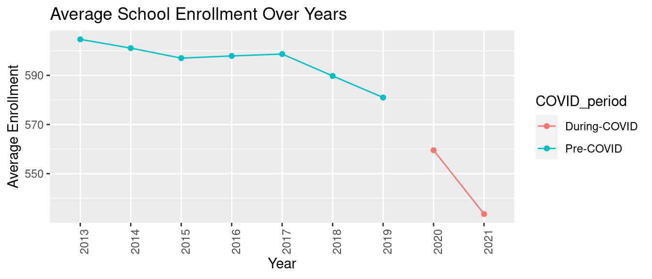 Unclear how COVID affected poverty levels of student in 2020 and 2021 as they seem to be within normal bounds.