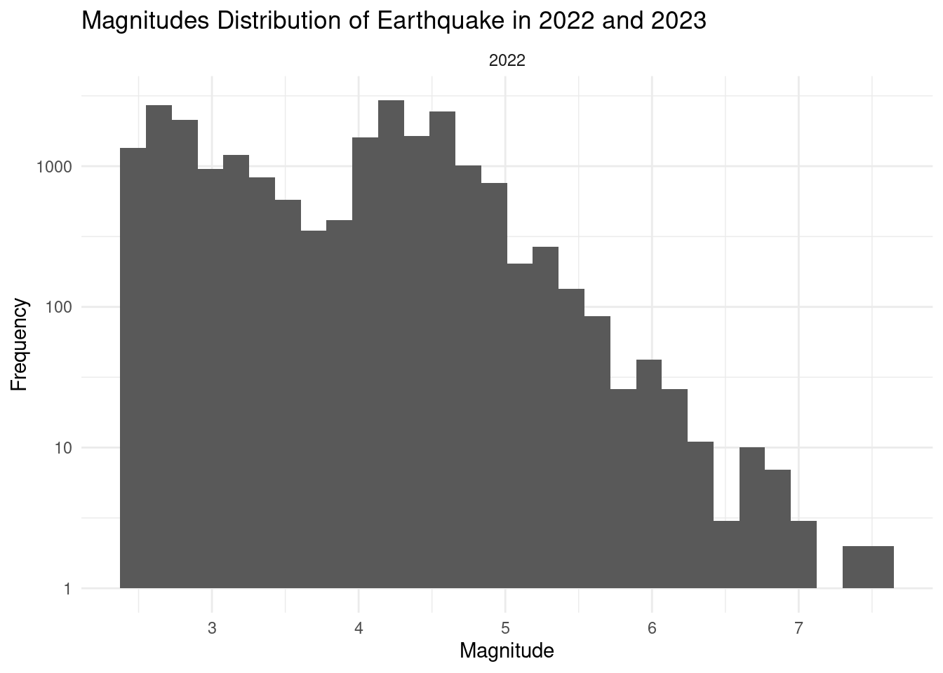 title="Magnitudes Distribution of Earthquake in 2022 and 2023",