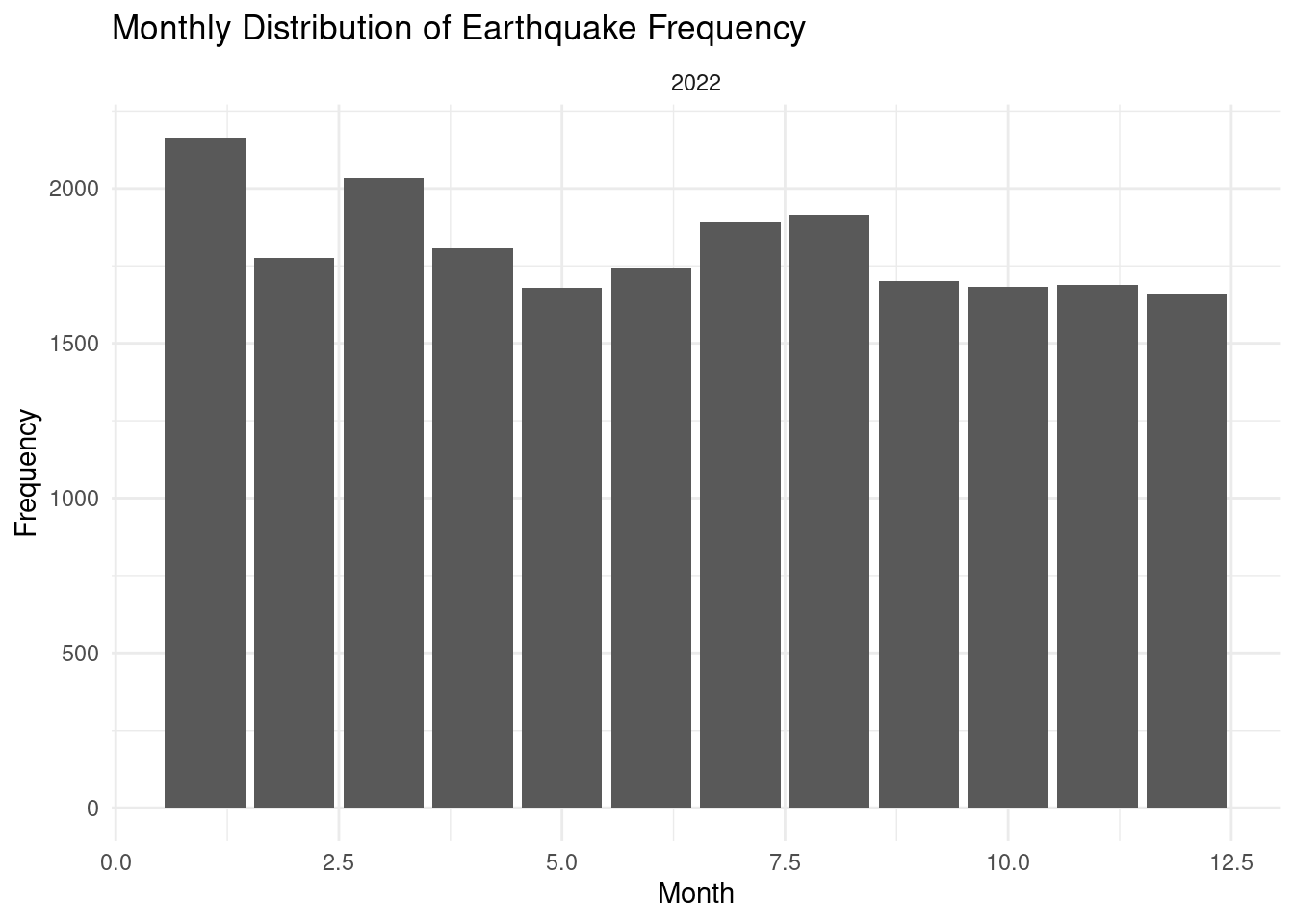 Analysis 3: What is the monthly distribution of earthquakes in 2022 and 2023?