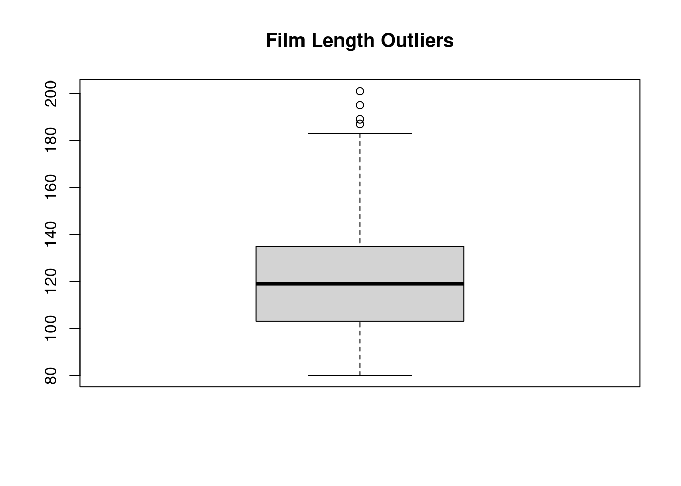 boxplot(blockbusters$length, main ="Film Length Outliers")