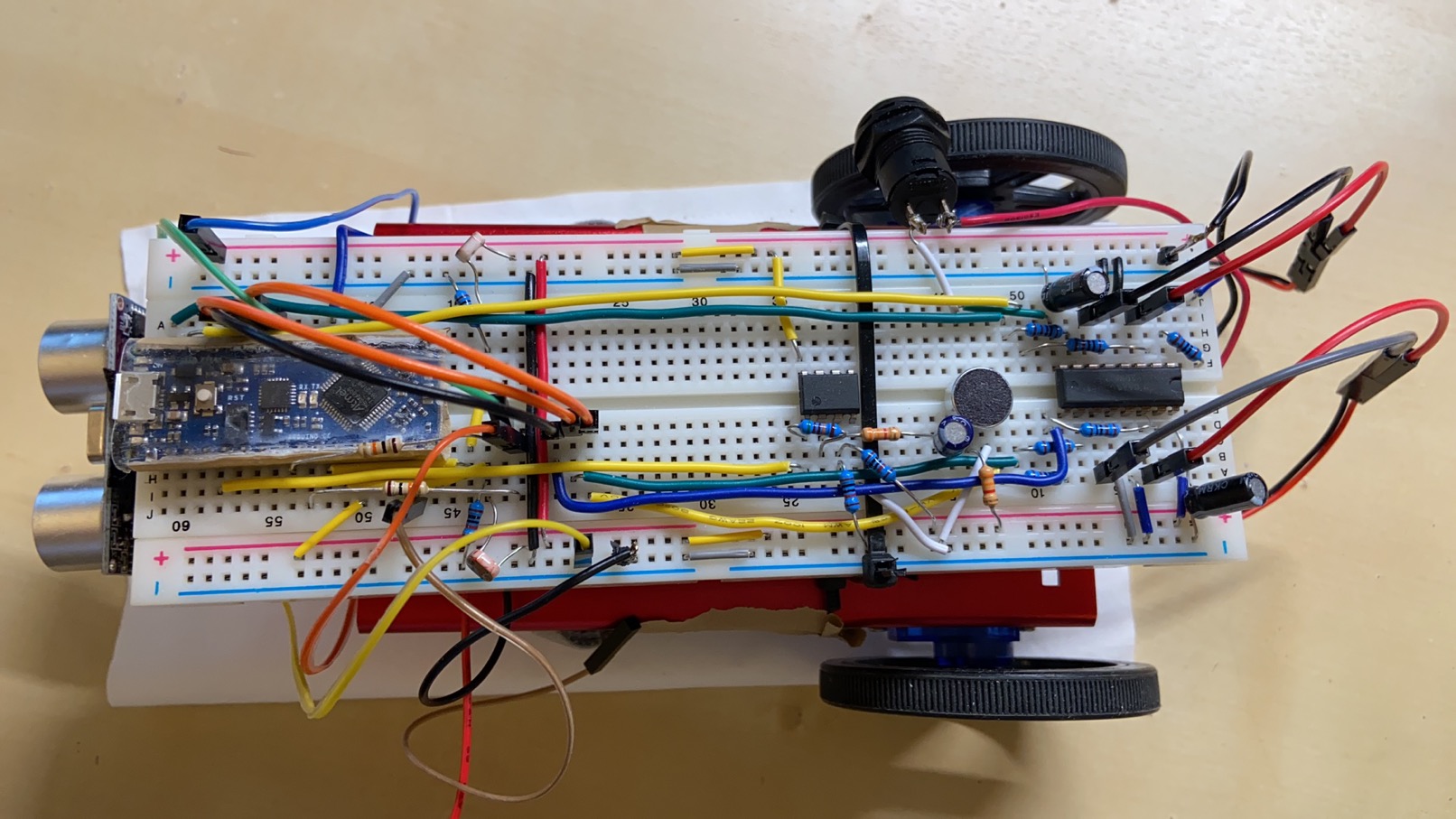 All these tasks were successfully completed, and we successfully used everything we have built in previous labs including the h-bridge, ultrasonic sensors, light sensors, microphone circuit, etc. Putting everything together was difficult because it requires